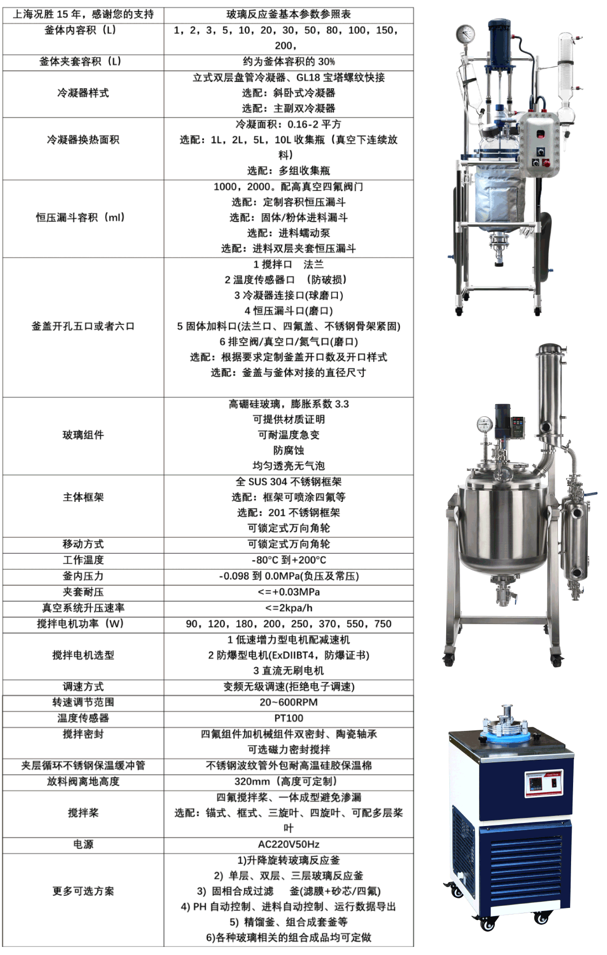 新老客户您好:如果您需要定制玻璃反应釜(单层/双层/三层),请将您的需求发送给右侧技术经理,获取我们为您量身定制的配套方案及详情报价。上海况胜实业,17年实验室仪器设备制造经验,助力您的科研生产。